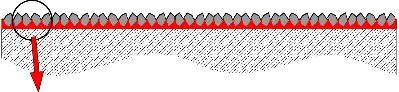 Anwendung: Die Beschichtung wird nach den Vorarbeiten wie Anschleifen und Aufrauhen auf den zu bearbeitenden Untergrund aufgebracht. Nach dem Schrumpfungsprozeß ragen harte Kornspitzen aus der Versiegelung/Beschichtung.