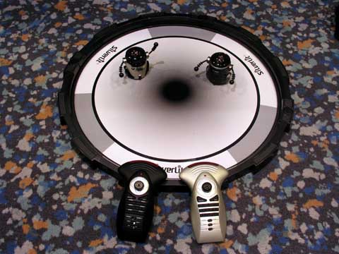 A.I. gegen FB hier wird einer der Roboter er Infrarot FB gesteuert! man kann bis zu 3/6 Funktionstasten mit specialattacks belegen die dann im Kampf ausgeführt werden können! aber wie gesagt der Gegner lernt